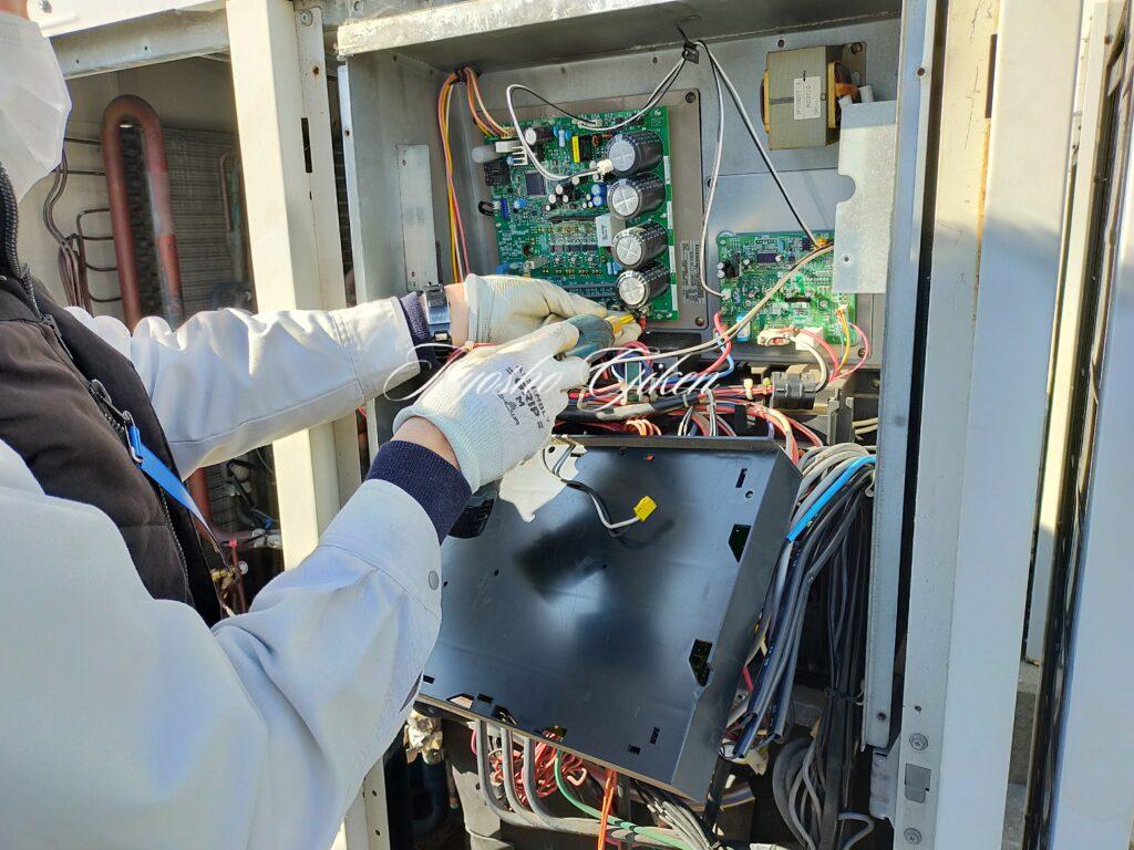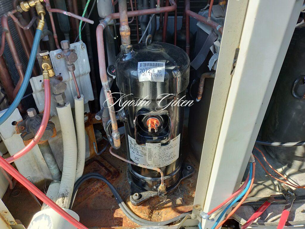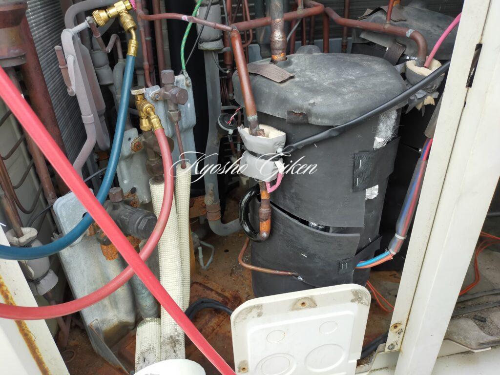 今回は、設備用エアコン機種:RZYCP450MR×2、RZYCP280MR×2 インバータ圧縮機絶縁不良による修理作業です。