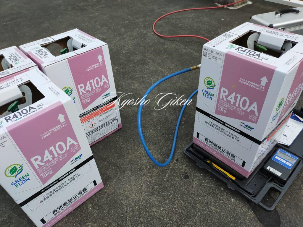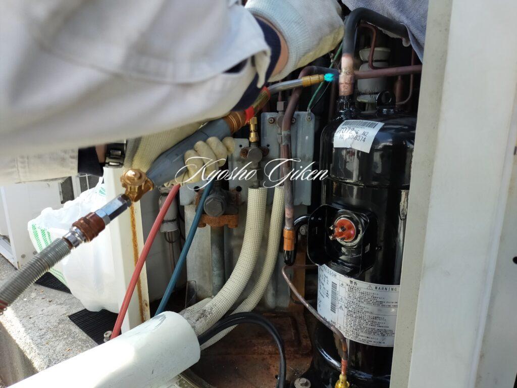 真空乾燥を十分に行ったあと、冷媒充填をしていきます。