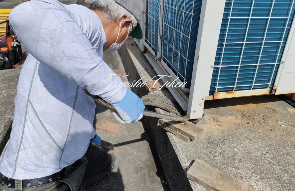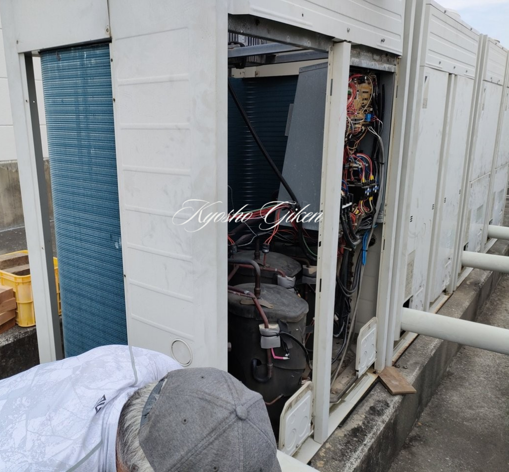 【浜松市】エアコン修理の事例|50馬力設備用 室外機熱交換器交換作業