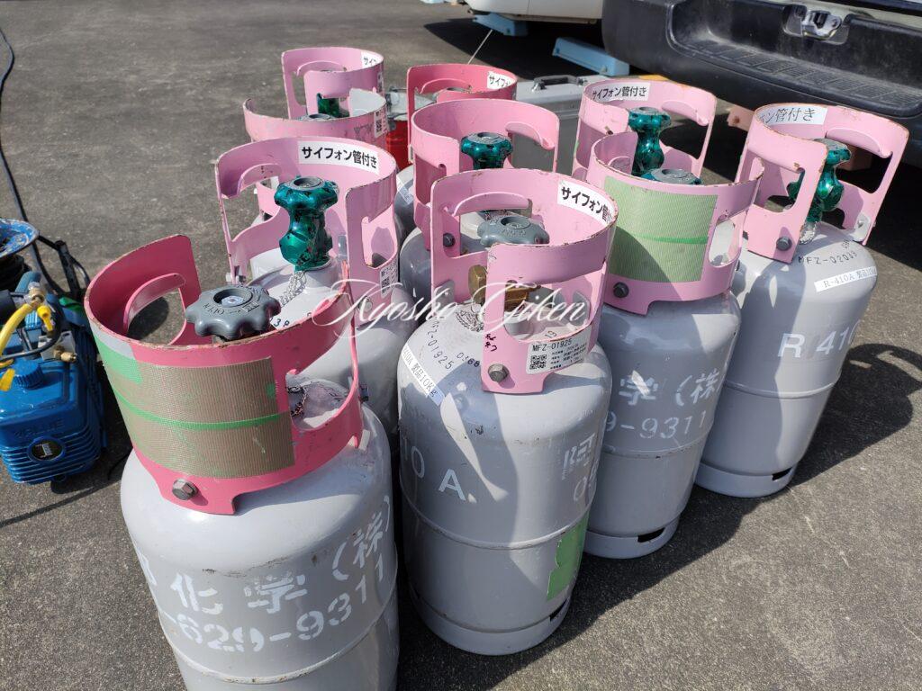 配管長も長くガス管もφ38.1とかなので、冷媒もたくさん用意しました。
