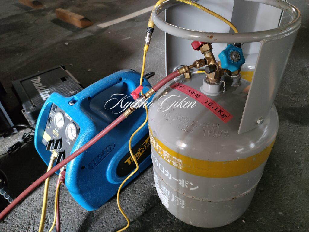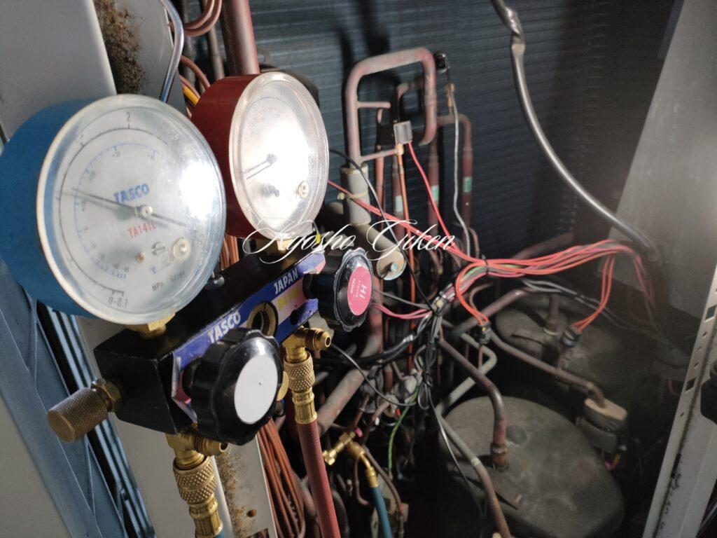 圧縮機交換も終わり真空引きしてから冷媒充填しました。