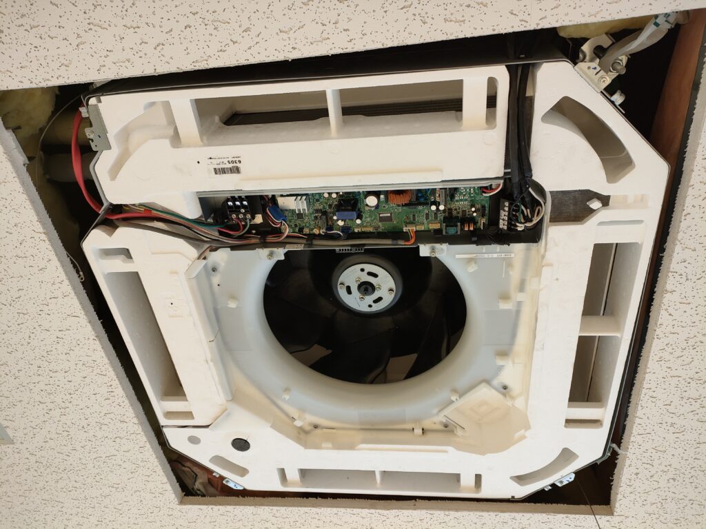 【浜松市】空調機更新工事の実績|18年使用の4馬力天井カセットエアコンを省エネ機へ入替