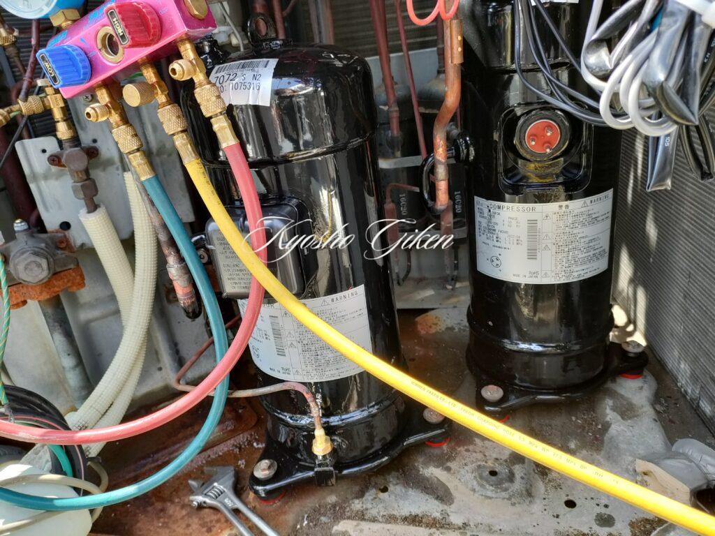 【浜松市】業務用エアコン修理の事例|30馬力ビル用マルチ 圧縮機交換作業