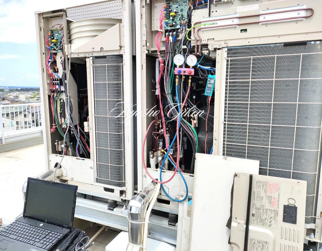 空調機入替工事全般・冷媒回収作業・圧縮機交換・熱交換器交換・ファンモータ交換・膨張弁交換・ドレンポンプ交換・ドレンパン交換・サーミスタ交換