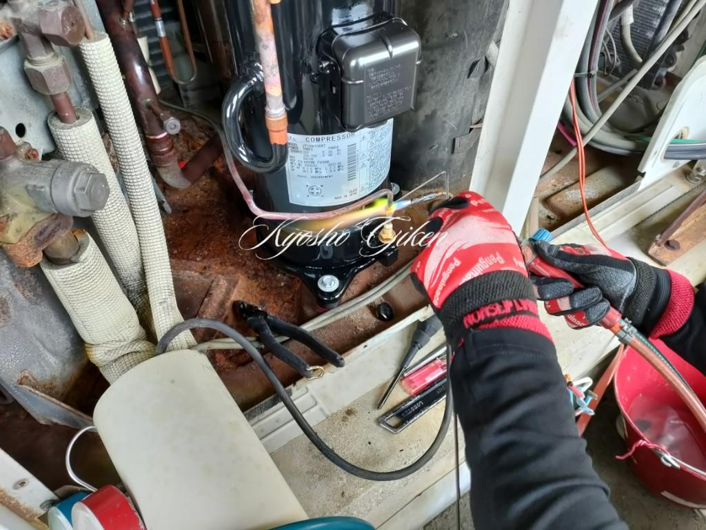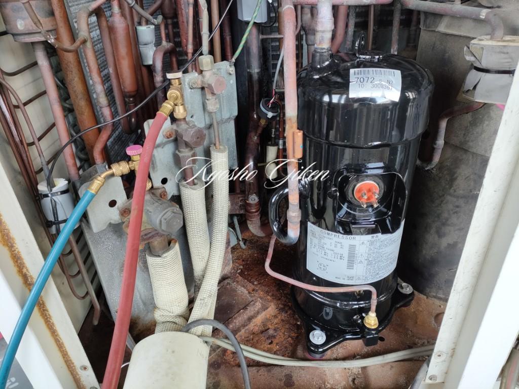 15馬力業務用エアコン修理 浜松市|圧縮機交換作業