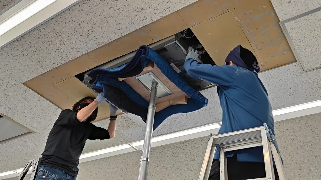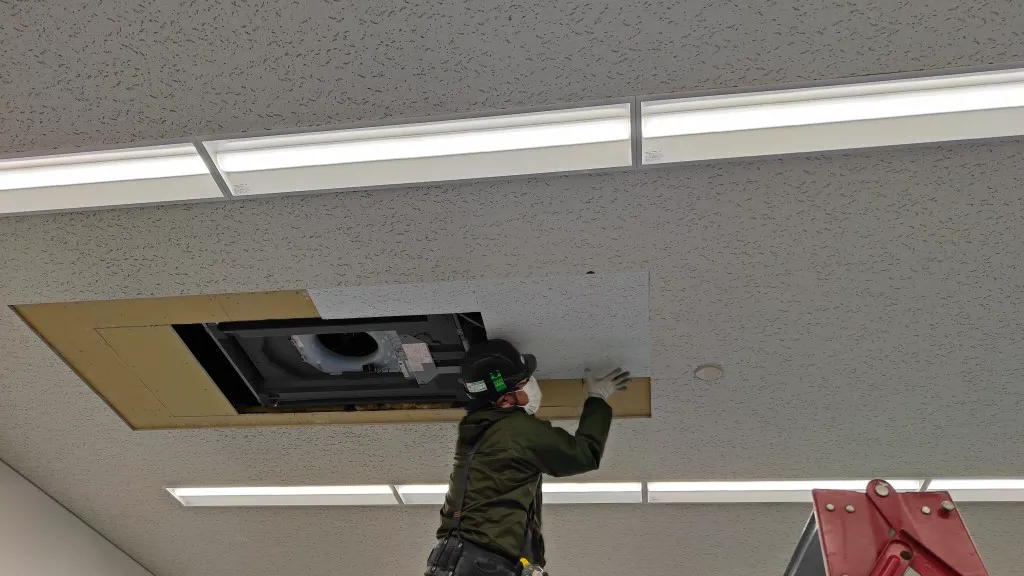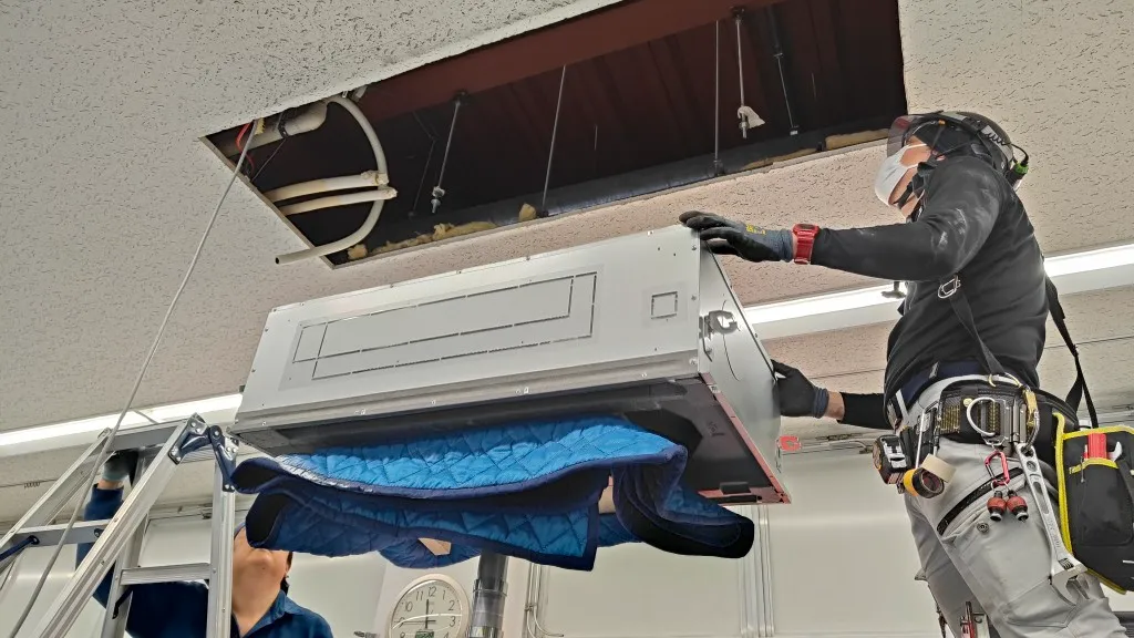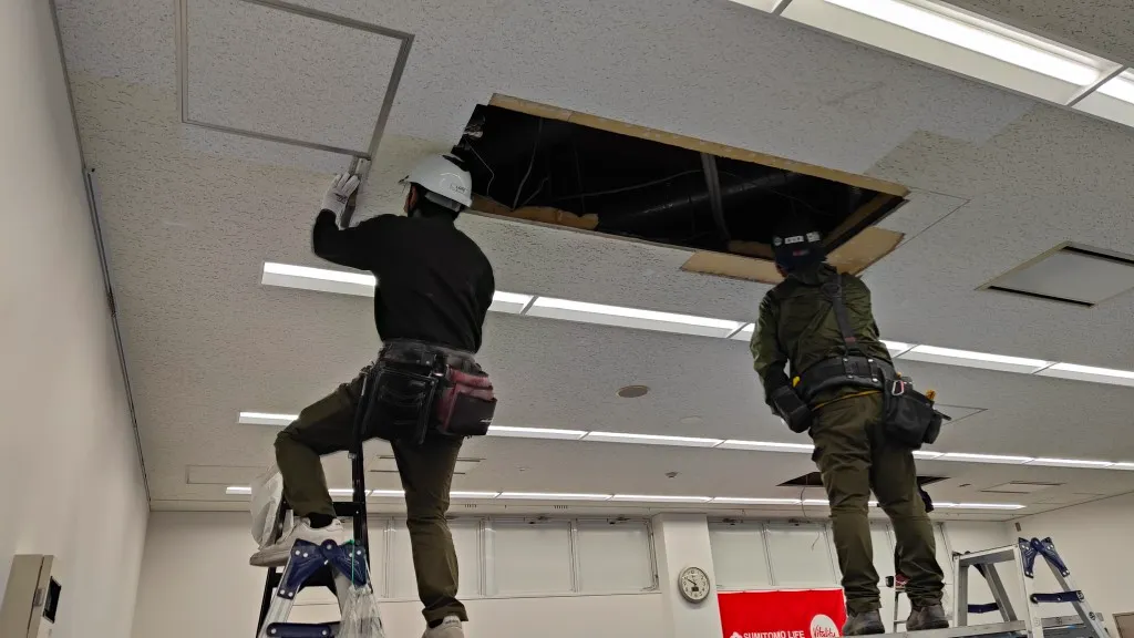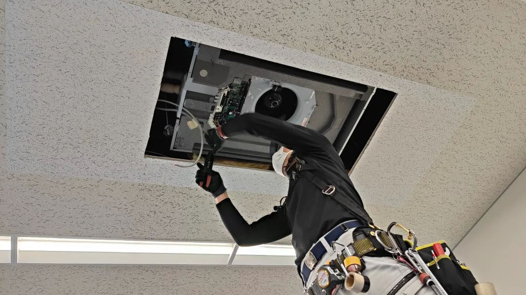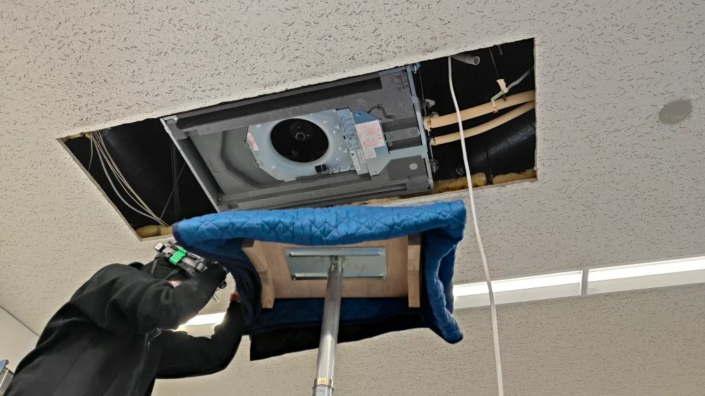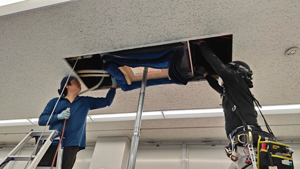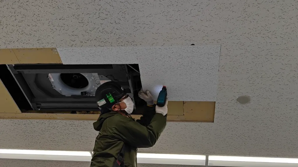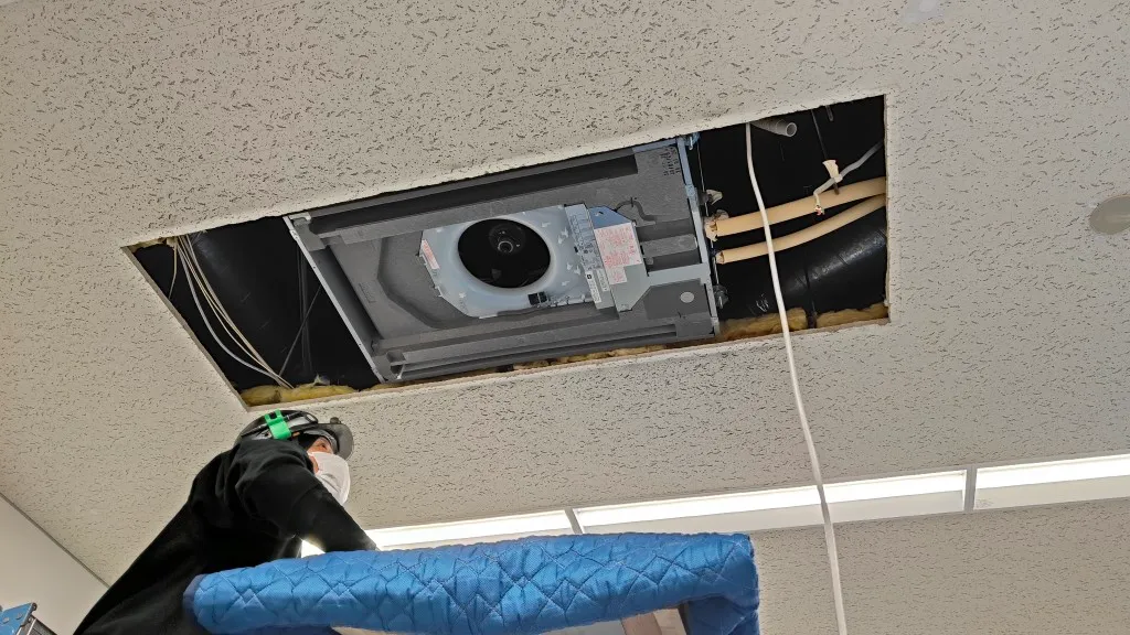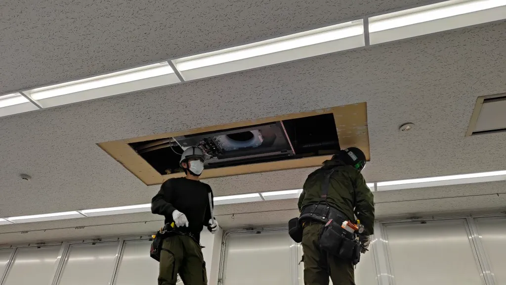 そのため今回は、空調更新とあわせて天井補修工事も必要となる現場でした。