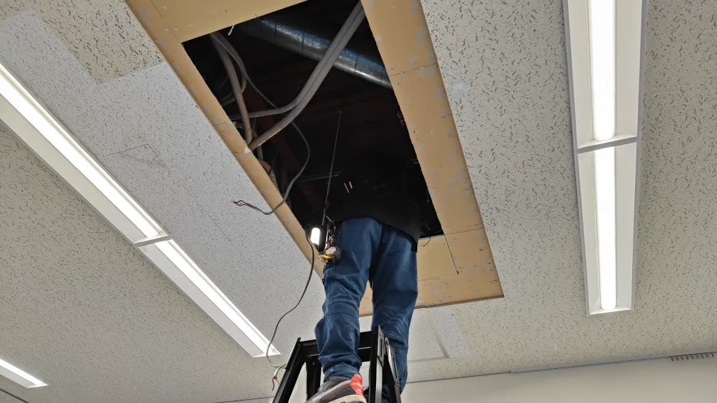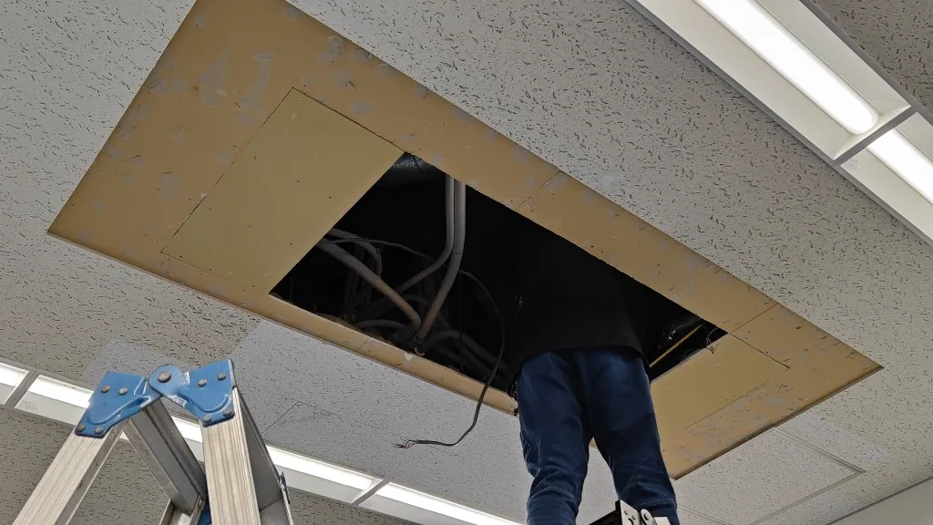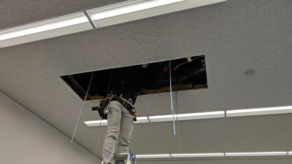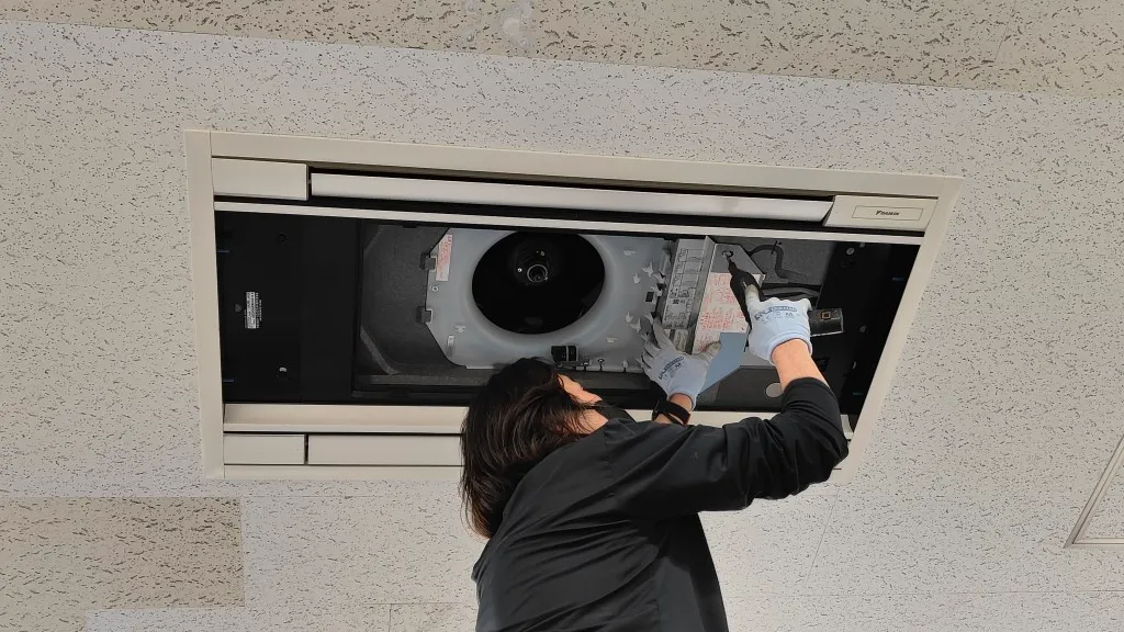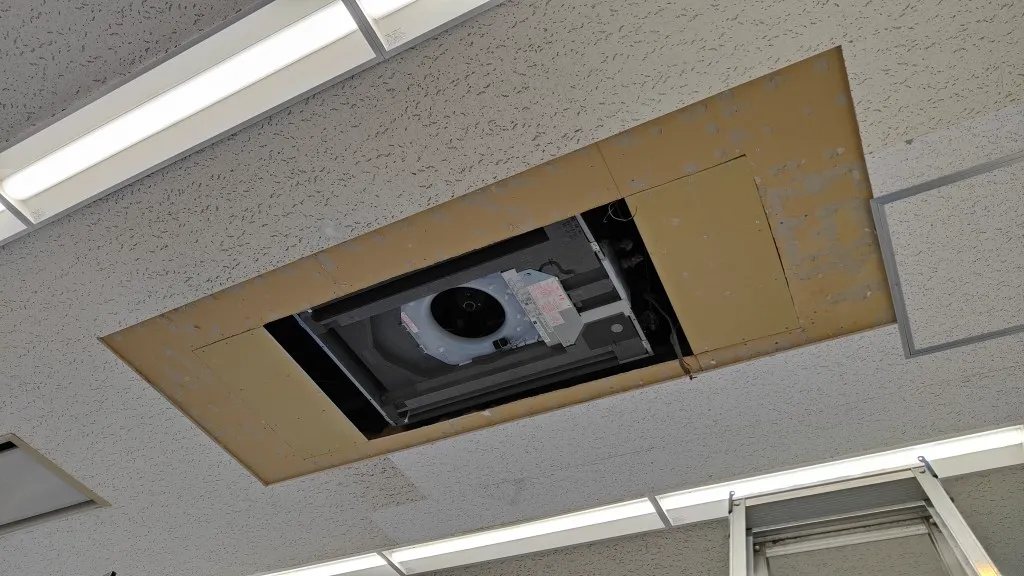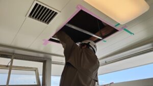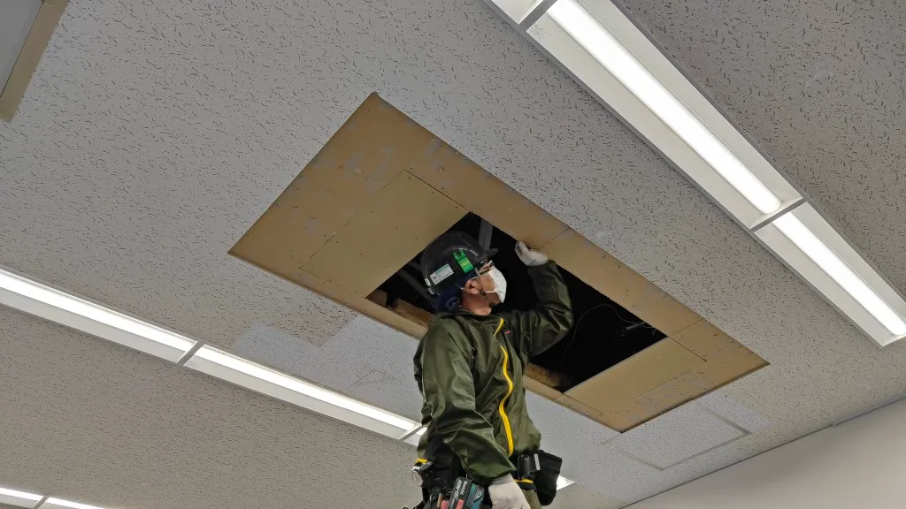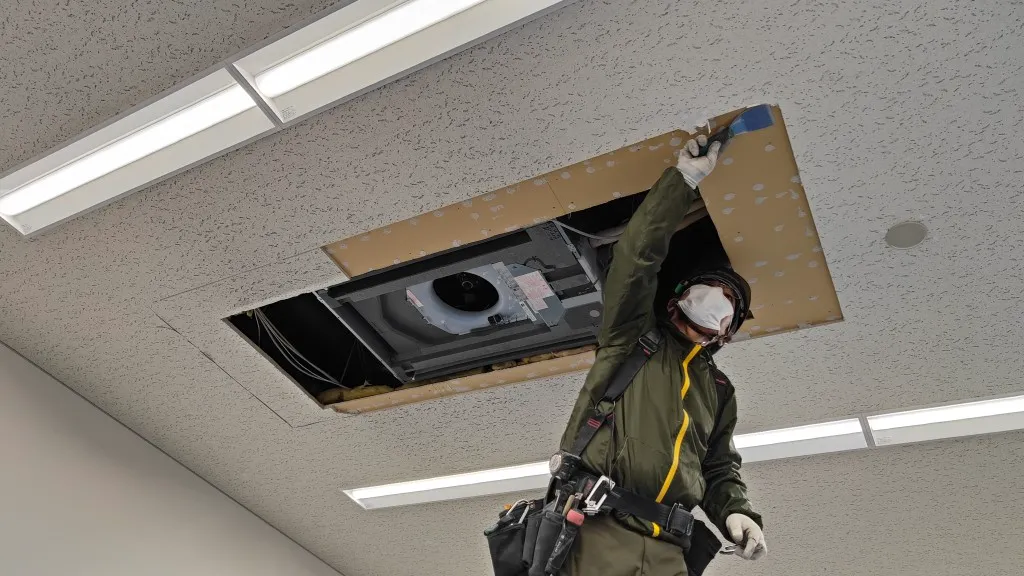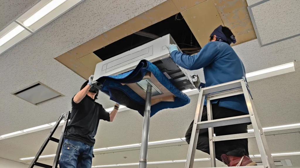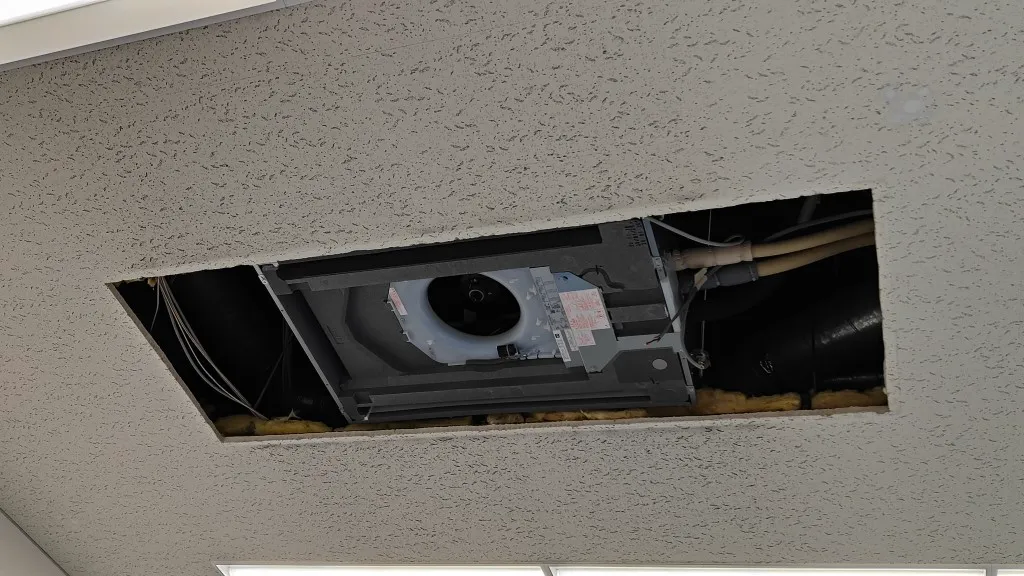 そのため今回は、空調更新とあわせて天井補修工事も必要となる現場でした。