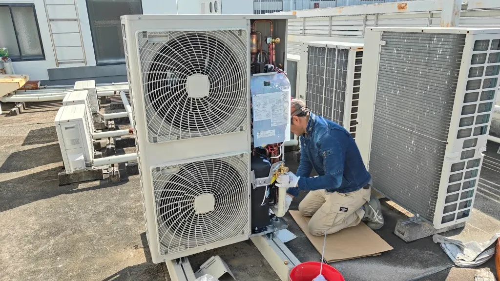 - 土曜日:室内機3台の入替、室外機更新、天井補修、気密検査、試運転調整