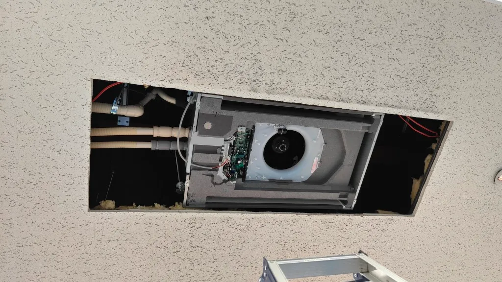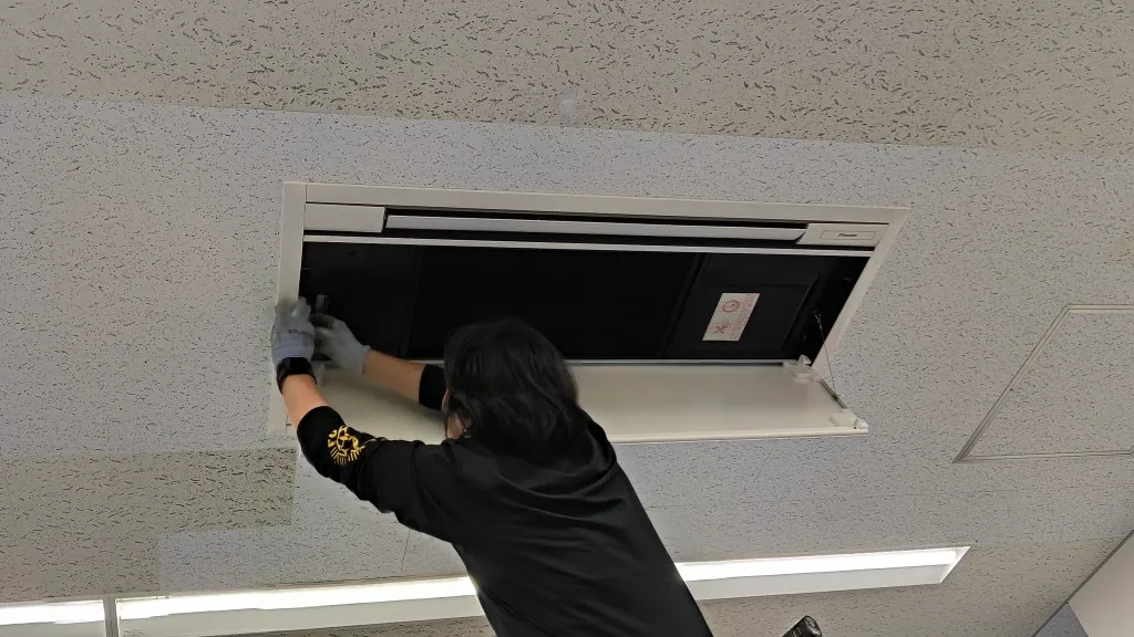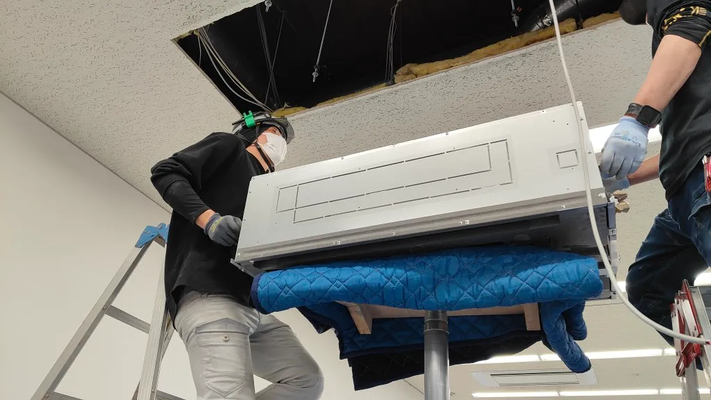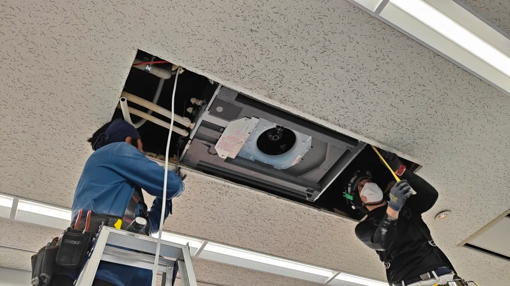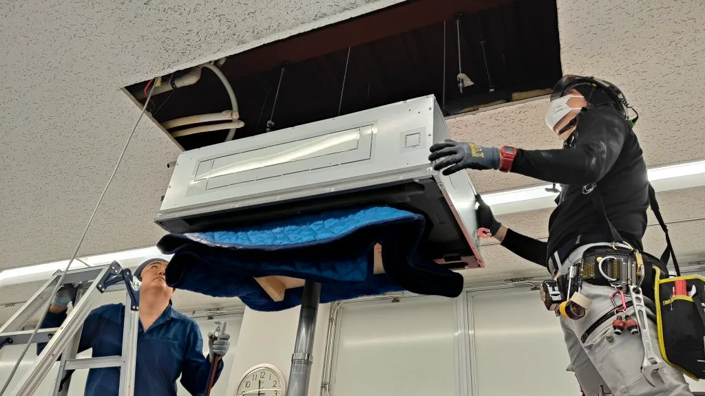 単なる入替ではなく、室内機寸法差による天井補修まで含めた総合対応が必要であり、設備更新の技術力だけでなく、工程管理と仕上がりへの配慮も重要な案件でした。
