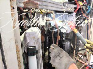 【修理作業実績】 浜松市の施設にて空調機修理を実施しました。 今回は、ビル用マルチエアコンの定速圧縮機交換作業をしております。 まずガス回収から始めていきます。 今回は、ガス量が60kg近くあるので、回収ボンベも3本用意 […]