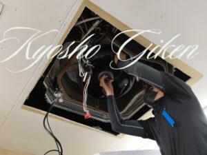 空調機修理|浜松市|天カセ2台結露による断熱材貼り付け作業